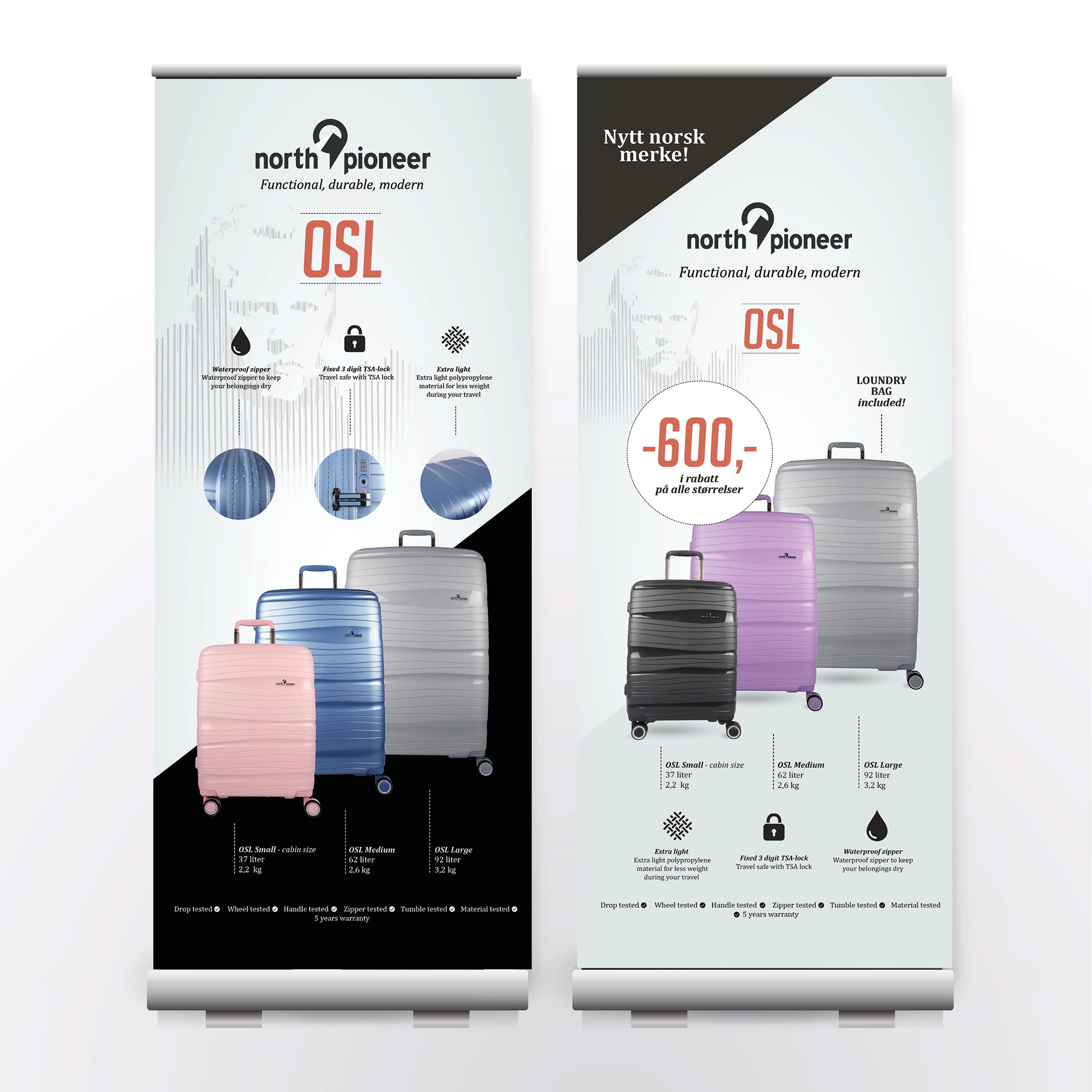 North Pioneer er et nytt norsk koffert-merke. Jeg har designet logoen. Jeg har også vært med å utvikle hele konseptet North Pioneer.